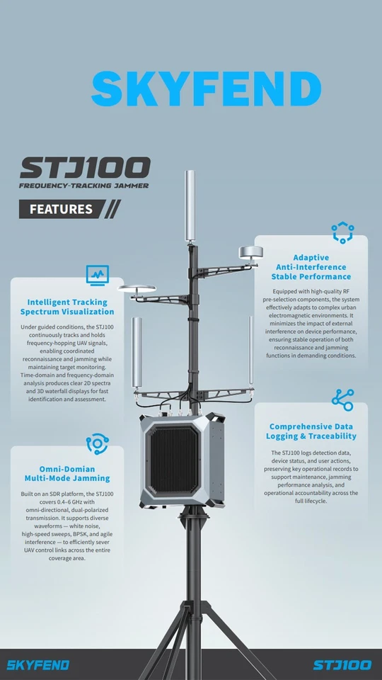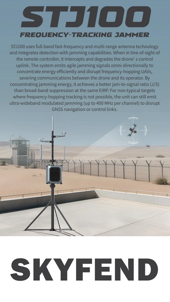 ≥ 1 km (line-of-sight to controller; jamming improvement ≥ 10 dB)